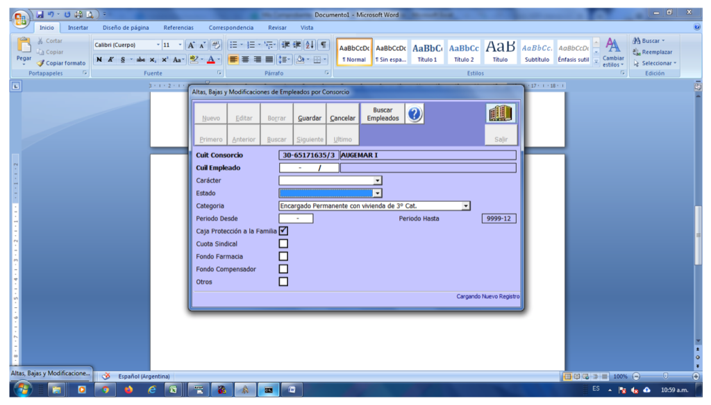 De esta forma, al generar la boleta del mes, el consorcio figurara con un empelado cuyos datos corresponden a los de la empresa. Mes a mes solo se modificara el valor que corresponda.